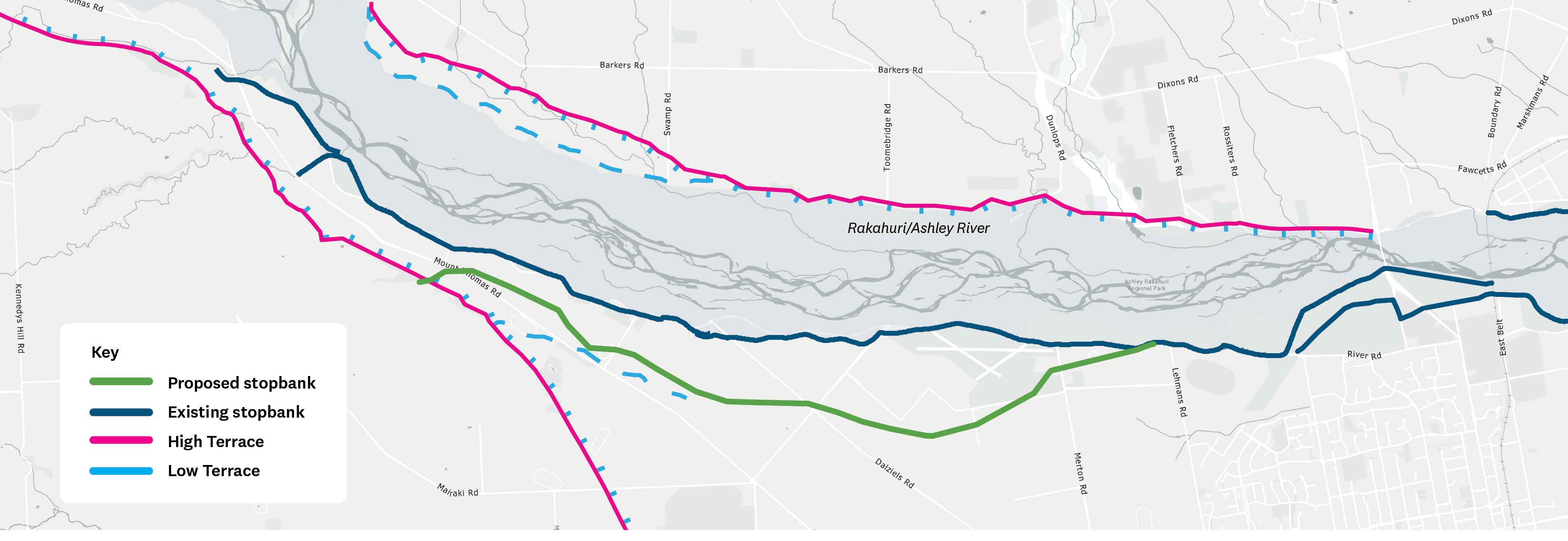 This provides two levels of protection for the urban areas of Rangiora and Kaiapoi, as well as the rural areas that are currently within the modelled flow paths for breakouts between the Ōkūkū to Rangiora